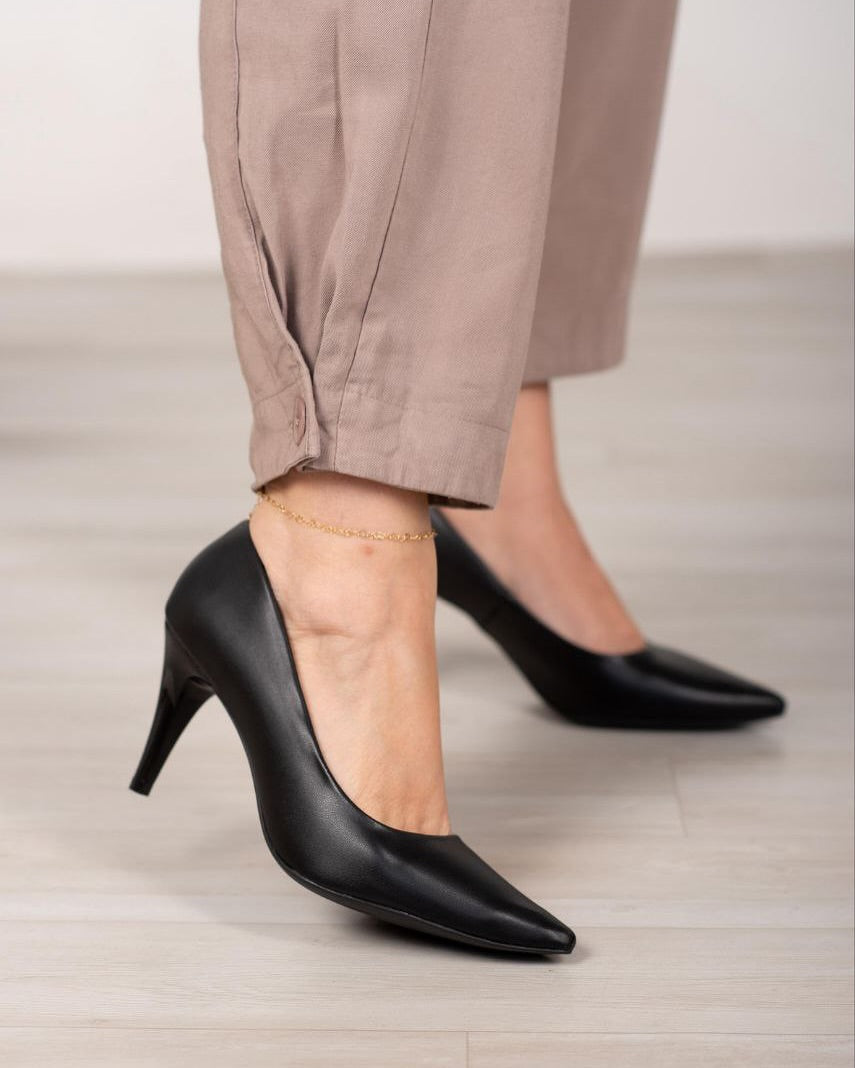 Destaques: • Design clean e sofisticado • Salto médio confortável para uso prolongado • Palmilha macia e acabamento de alta qualidade • Combina com calças, saias, vestidos e alfaiataria