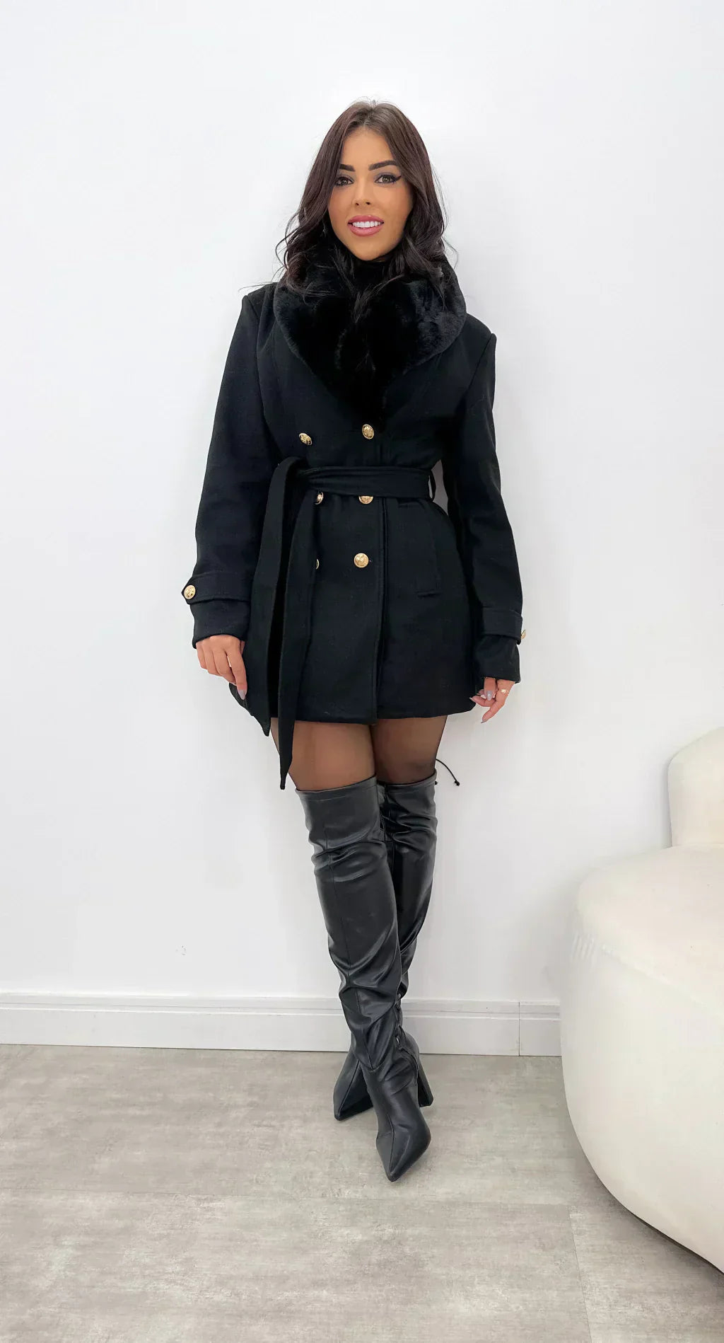 🌸 Gola removível: Versatilidade para adaptar ao clima e estilo. 🌸 Forrado por dentro: Mais conforto e proteção térmica. 🌸 Fechamento por botões: Estilo clássico e funcional. 🌸 Bolsos funcionais: Praticidade sem abrir mão da elegância. 🌸 Acompanha faixa para amarração: Valoriza a silhueta com sofisticação.